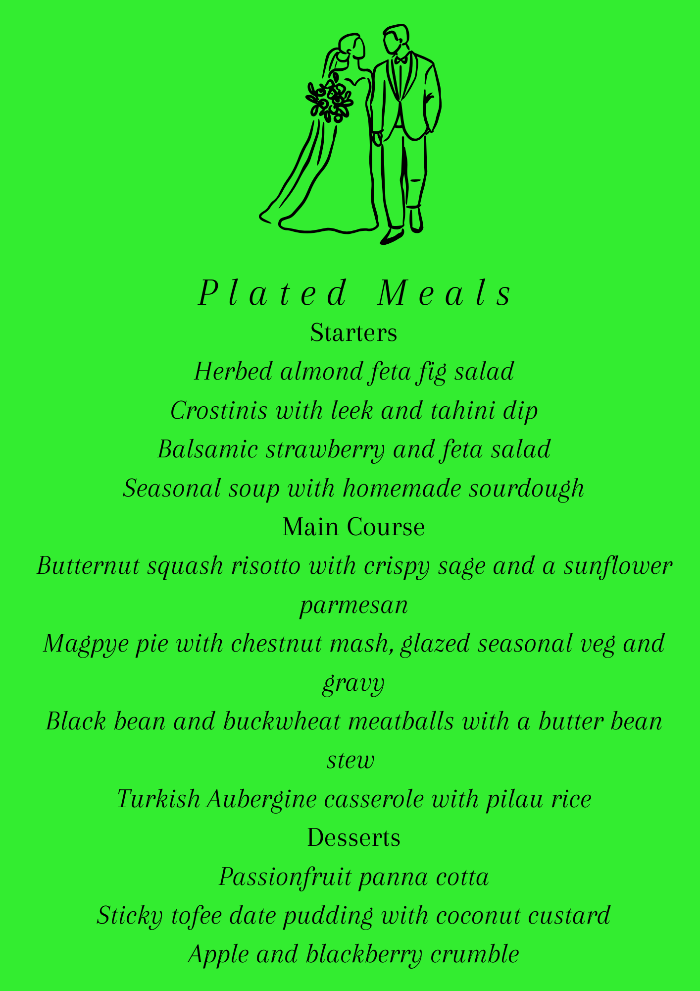 If you have your heart set on a menu please do get in touch for a bespoke quote.